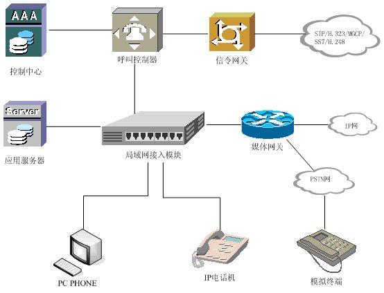 提供IP-PBX系統(tǒng)各組件之間的連接。在局域網的環(huán)境中,該模塊可以使用局域網交換機來代替。