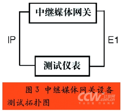 我國通信行業(yè)國家標準《IP中繼媒體網(wǎng)關(guān)設(shè)備測試方法》中明確了中繼媒體網(wǎng)關(guān)十個大項的測試,分別是基本功能測試、接口測試、協(xié)議測試、通信流程測試、網(wǎng)管功能測試、性能測試、可靠性測試、網(wǎng)同步測試、常規(guī)測試和環(huán)境測試。按照圖3所示的測試拓撲圖進行連接,使用測試儀表仿真軟交換、綜合接入設(shè)備和程控交換機,就可以按照測試方法中的測項要求,逐一得出測試結(jié)果。