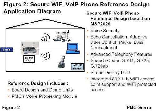 圖2:PMC-Sierra具備安全特性的VoIP Wi-Fi電話應用原理圖