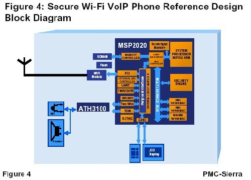 圖4:PMC-Sierra具備安全特性的VoIP Wi-Fi電話系統(tǒng)框圖