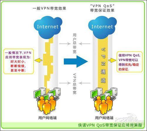 一般情況下VPN線路帶寬所表現(xiàn)出來的時大時小、斷斷續(xù)續(xù)、甚至中斷等等不夠用或不穩(wěn)定的情況,在使用VPN QoS以后可得到根本的好轉(zhuǎn),它可以對VPN總體帶寬進(jìn)行大小分配,進(jìn)行優(yōu)先而穩(wěn)定的保證。有了足夠的VPN線路帶寬,才能快速的進(jìn)行VoIP、ERP等應(yīng)用。因此保證VPN整體帶寬是VPN應(yīng)用的基礎(chǔ)。