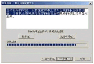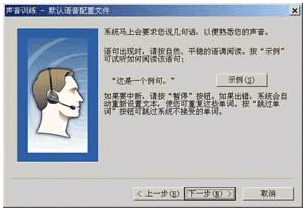 點擊"下一步"按鈕后,就會看到如圖11所示的對話框,請根據(jù)窗口中的提示對話信息朗讀,如果朗讀正確,對話信息將會反白顯示,如果你朗讀錯誤,請重新進行。