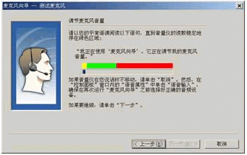 (1)點擊"下一步"按鈕后,系統(tǒng)將首先幫助你調(diào)整麥克風(如圖4所示)