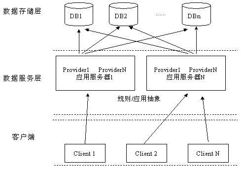 在大規(guī)模系統(tǒng)中,為保證數(shù)據(jù)庫(kù)訪(fǎng)問(wèn)的效率和安全性,數(shù)據(jù)訪(fǎng)問(wèn)方式一般采用由Client、中間層應(yīng)用服務(wù)器(或叫規(guī)則服務(wù)器)和Server組成的三層Client/Server結(jié)構(gòu)。將數(shù)據(jù)庫(kù)應(yīng)用劃分為邏輯上的三個(gè)層次,客戶(hù)程序只關(guān)心數(shù)據(jù)的顯示與用戶(hù)界面;應(yīng)用服務(wù)器處理客戶(hù)數(shù)據(jù)查詢(xún)與更新請(qǐng)求,可在應(yīng)用服務(wù)器上定義數(shù)據(jù)操作規(guī)則以保證數(shù)據(jù)操作的合法性、安全性與有效性。在三層結(jié)構(gòu)下,方便了軟件的修改和模塊的疊加,客戶(hù)端通過(guò)應(yīng)用服務(wù)器訪(fǎng)問(wèn)數(shù)據(jù)庫(kù)服務(wù)器,客戶(hù)端并不直接與數(shù)據(jù)庫(kù)服務(wù)器建立連接,從而減輕了數(shù)據(jù)庫(kù)服務(wù)器的壓力,提高整個(gè)應(yīng)用系統(tǒng)的運(yùn)行效率。