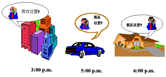 用戶擁有多個(gè)電話,并且位于不同的地理位置,這樣的多個(gè)電話可以使用同一個(gè)號(hào)碼。呼入的電話根據(jù)主叫的位置來(lái)分配。前面的比薩餅預(yù)訂就是這種業(yè)務(wù)的一個(gè)例子。