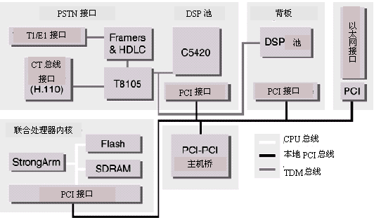 通用端口的AG系列平臺(tái)集合了以下接口或功能:電話接口,一個(gè)由眾多DSP芯片組成的板上控制器用于支持G3傳真功能,語(yǔ)音和DTMF處理,呼叫接續(xù),CT總線(H.100)或MVIP總線交換。AG2000(8端口環(huán)路中繼或DID,或者是它們的組合)。AG4000-T1(24-96端口),以及AG4000-E1(30-120端口)可以插在同一個(gè)PCI(或Compact PCI)插槽上。