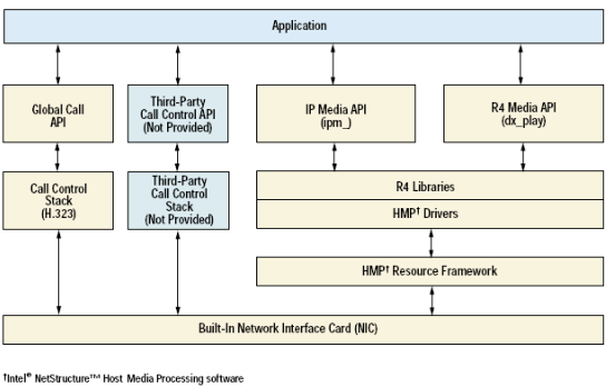 應(yīng)用程序在HMP軟件上開發(fā)時(shí)使用相同的R4和GlobalCall API, 和Dialogic Dialogic板卡