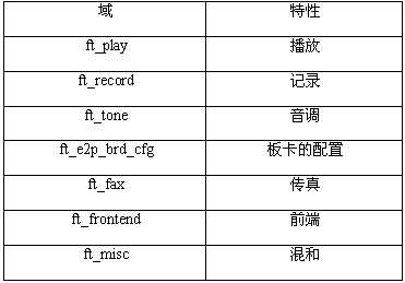 語(yǔ)音API函數(shù)。在語(yǔ)音API的頭文件dxxxlib.h中定義了用FEATURE_TABLE數(shù)據(jù)結(jié)構(gòu)中的某個(gè)參數(shù)代表的特性。FEATURE_TABLE結(jié)構(gòu)中的ft_tone字段包括一個(gè)位掩碼,它指出了一個(gè)特定的語(yǔ)音設(shè)備支持的音調(diào)特性。