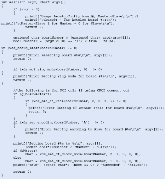 圖10所示為配置Amtelco卡的配置代碼示例,這個應用需要在每一個服務器上運行。